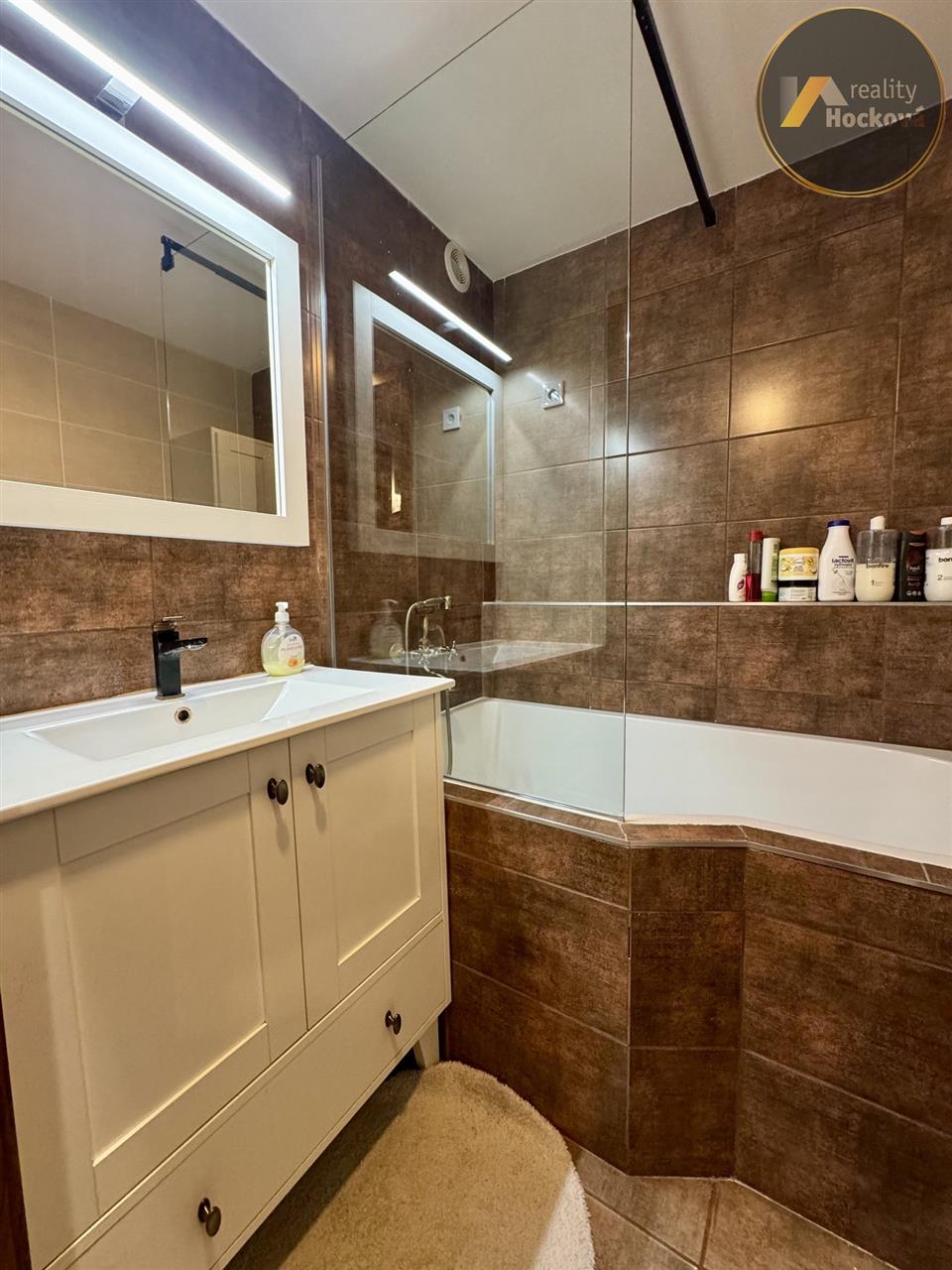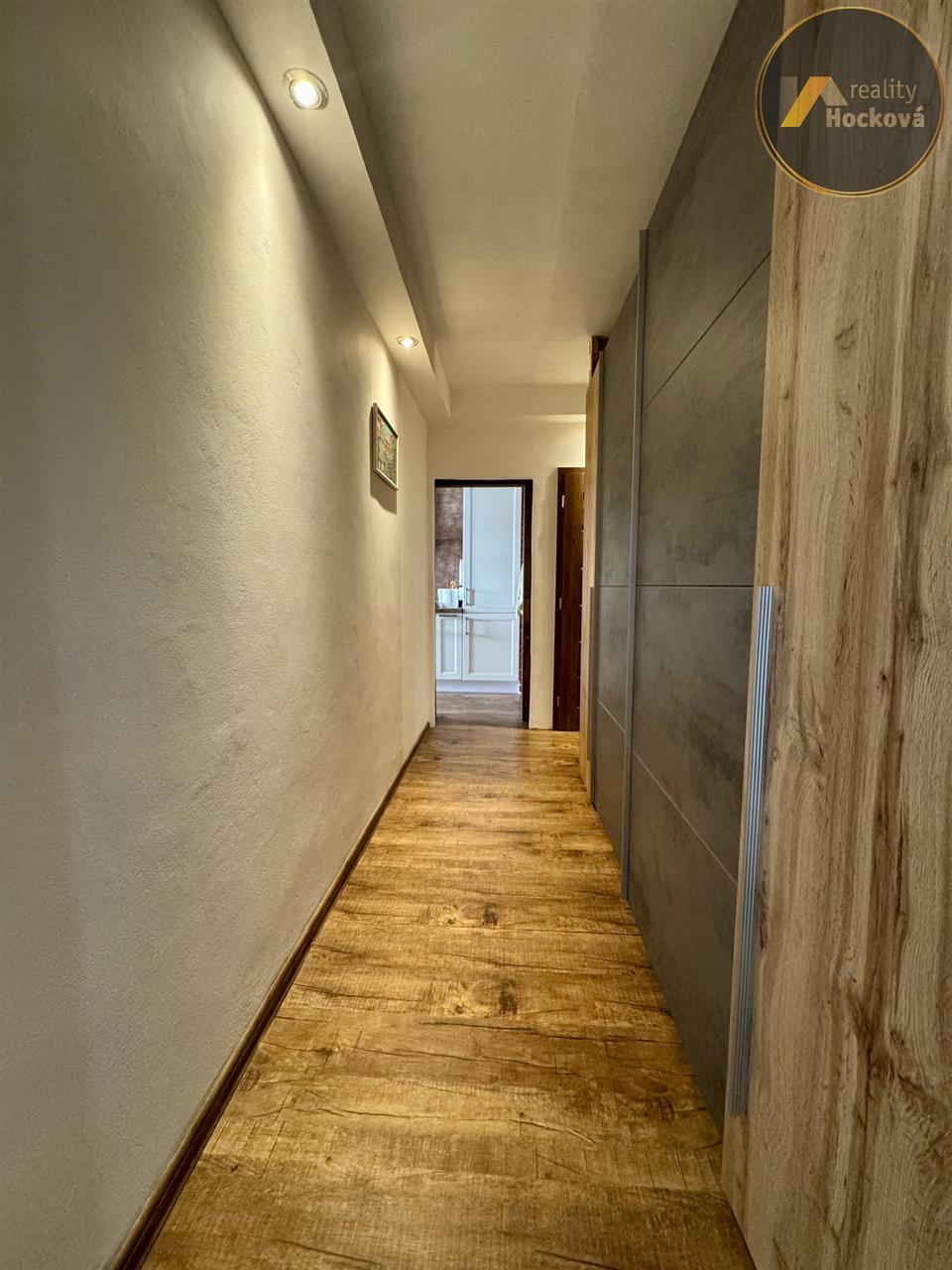 Byt prošel kompletní rekonstrukcí v roce 2023 – nové rozvody elektřiny a vody, podlahy, dveře, koupelny i kuchyňská linka.
