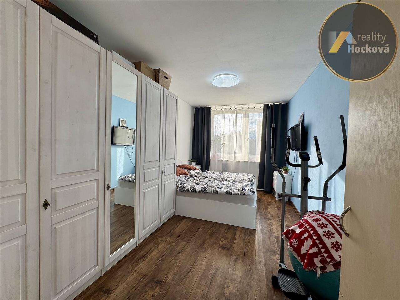 Dispozice: vstupní chodba, 2 samostatné neprůchozí pokoje, koupelna s vanou a umyvadlem, samostatné WC, kuchyně s jídelnou a navazujícím obývacím pokojem se vstupem na prostornou lodžii, ložnice s vlastní koupelnou (sprchový kout a WC). K bytu náleží sklep o velikosti 6 m².