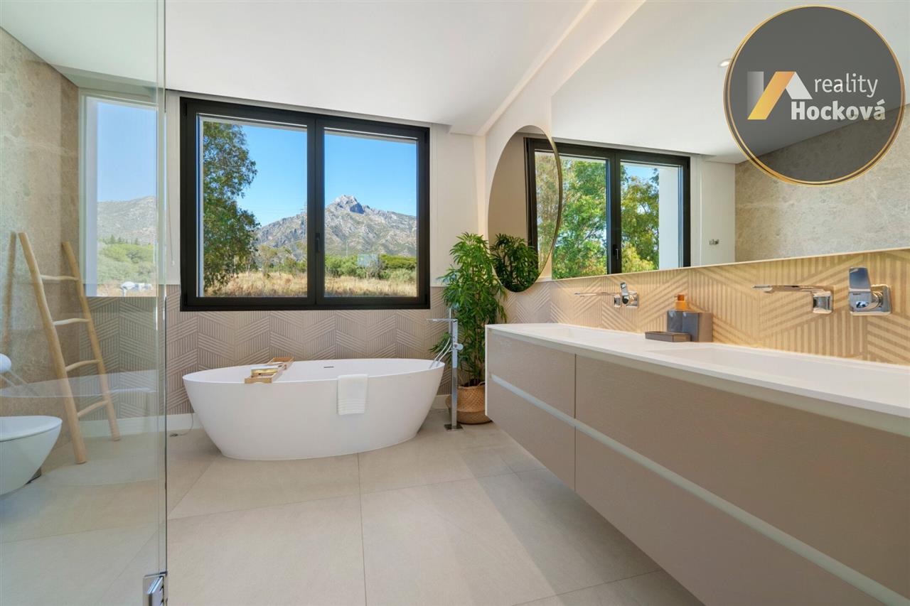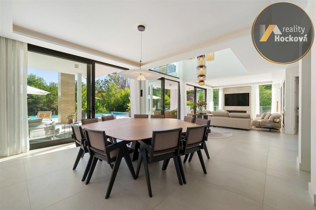 Díky velkoformátovým oknům od podlahy ke stropu jsou interiéry zaplavené přirozeným světlem, zatímco plynulé propojení vnitřních a venkovních prostor dokonale vystihuje životní styl Costa del Sol.