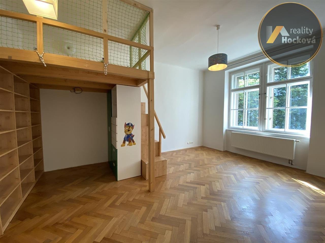 Prodej krásného a světlého bytu o velikosti 2+1 s lodžií (celkem 92,11m2), ve 2. patře. Byt má vysoké stropy, podlahy (parkety a dlažba), vymalovaný. Dispozice: z prostorné předsíně je vstup do kuchyně s jídelnou a vstupem na lodžii s výhledem do vnitrobloku, dále do šatny včetně úložných regálů, do 2 neprůchozích pokojů (v jednom pokoji je vestavěné patro), dále koupelna s vanou, umyvadlem a sprchovým koutem, samostatné WC s úložným prostorem pro úklidové věci (vestavěný prostor). Kuchyňská linka včetně spotřebičů (lednice, trouba, plynový vařič, digestoř). Jedná se o vyhledávanou lokalitu s kompletní občanskou vybaveností (Škroupovo náměstí, 2 ulice od Riegrových sadů, nespočet restaurací, barů, kaváren, obchodů, MŠ, ZŠ). Výborná dopravní dostupnost (6 minut pěšky metro Jiřího z Poděbrad). Byt je ihned volný. Hypoteční úvěr Vám zprostředkujeme. Pro více informací volejte na tel.