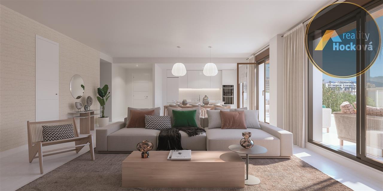 Prostorné a krásně prosvětlené pokoje s obývacími pokoji a jídelnami propojené velkými terasami. Otevřené kuchyně plně vybavené spotřebiči s nízkou spotřebou energie v souladu s kritérii udržitelnosti a komfortu.