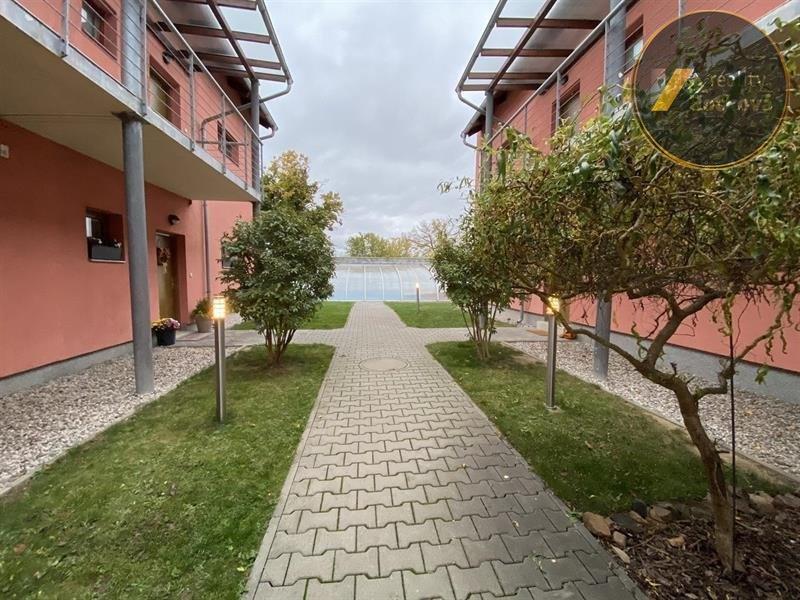 Nabízíme k prodeji krásný světlý byt 3+kk se zahrádkou ve viladomech Dvorská - v nové zástavbě v obci Řitka, okres Praha-Západ. Byt je v 1NP a je dispozičně řešen jako 3+kk (61m2), náleží k němu terasa (11m2), samostatná zahrada (80m2), sklepní koje (2,5m2), kryté parkovací stání (13m2) s kamerovým systémem. Byt se nachází v uzavřeném komplexu dvou dvoupatrových bytových domů (celkem 14 bytových jednotek), jehož součástí je společná zahrada kde se nachází krytý bazén 8x4m. Dispozice bytu: z předsíně je vstup do koupelny, samostatného WC, pokoje, kuchyňská linka včetně vestavěných spotřebičů (varná deska, el. trouba, digestoř, lednice, myčka) spojená s obývacím pokojem a dále vstup do ložnice. Vstup do zahrady je nejen z obývacího pokoje, ale i z ložnice. Plynové vytápění, klimatizace v bytě, plovoucí podlahy, koberec i dlažba. Veškerá občanská vybavenost v místě, krásné brdské lesy začínající za vila-domem, v němž se byt nachází a výborná dostupnost do Prahy (20 minut, přímé napojení na dálnici D4).