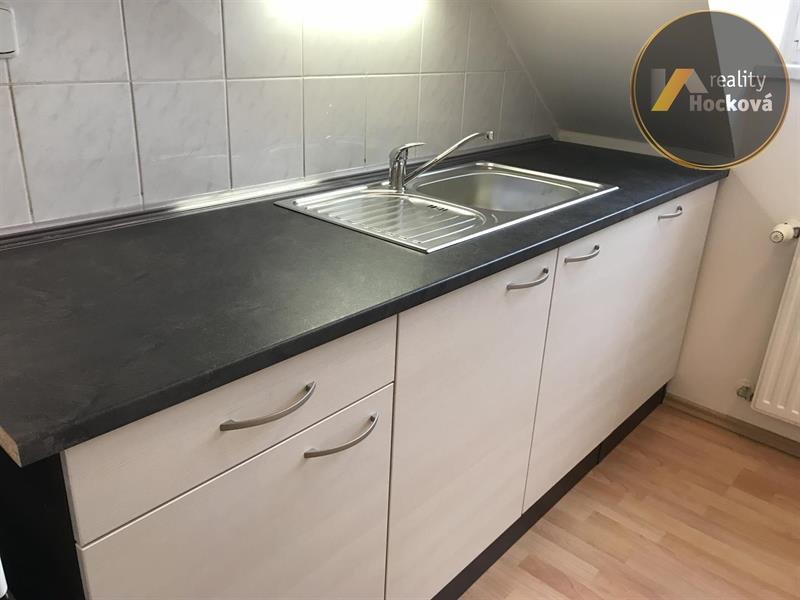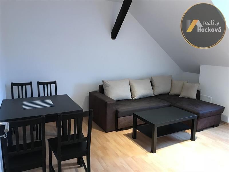 Pronájem podkrovního bytu 2+1, 50m2 + 8m2 sklep, 3NP bez výtahu, v bytě jsou nyní nové podlahy, dveře, kuchyňská linka, vymalováno. V obývacím pokoji je rohová rozkládací sedací souprava, 1x konferenční stolek, jídelní stůl + 4x židle, jeden pokoj je prázdný, koupelna s vanou, WC a umyvadlem, přípojka na pračku (ta zde není), v předsíni velké vestavěné skříně, botník, v kuchyni je velká lednice, myčka, trouba se sporákem. Kabelová televize UPC + internet. Volný ihned. Prohlídky jsou možné od 26. 2. (pondělí). Měsíční nájemné 14.000 Kč + 3.000 Kč poplatky. Provize ve výši 17.000 Kč, 1x vratná kauce 17.000 Kč před nastěhováním.