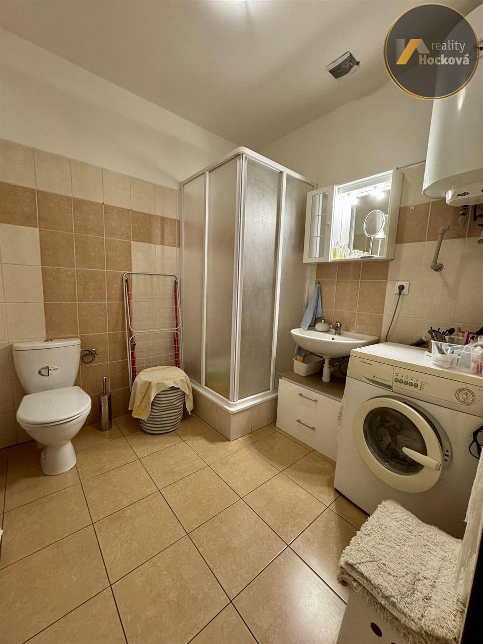 Koupelna – sprchový kout, WC, umyvadlo, pračka