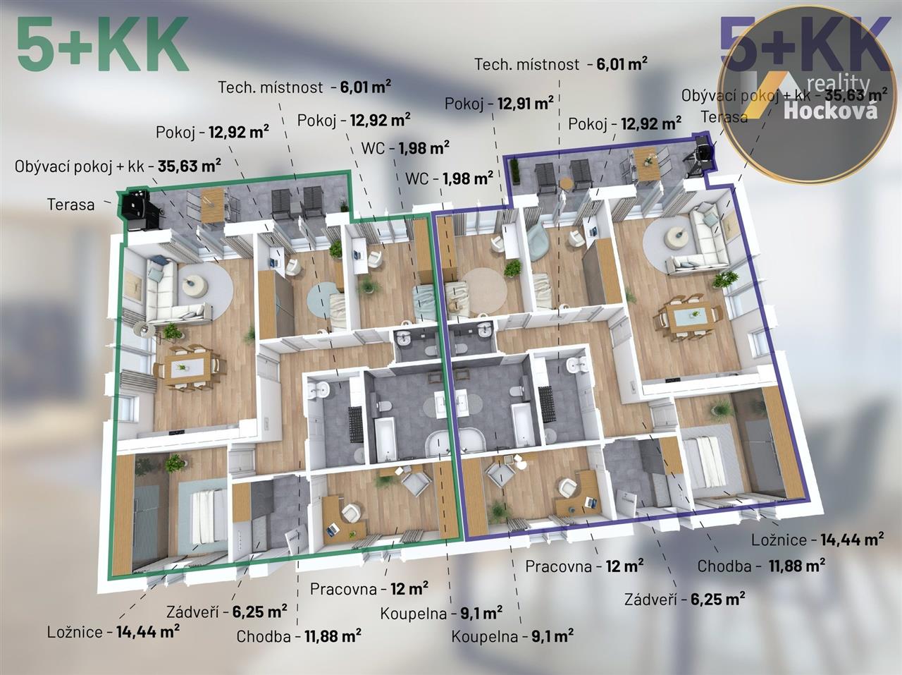 Nabízíme k prodeji levou část RD - bytovou jednotku 5+kk v moderním bungalovu o užitné ploše 123 m² s pozemkem 415 m².