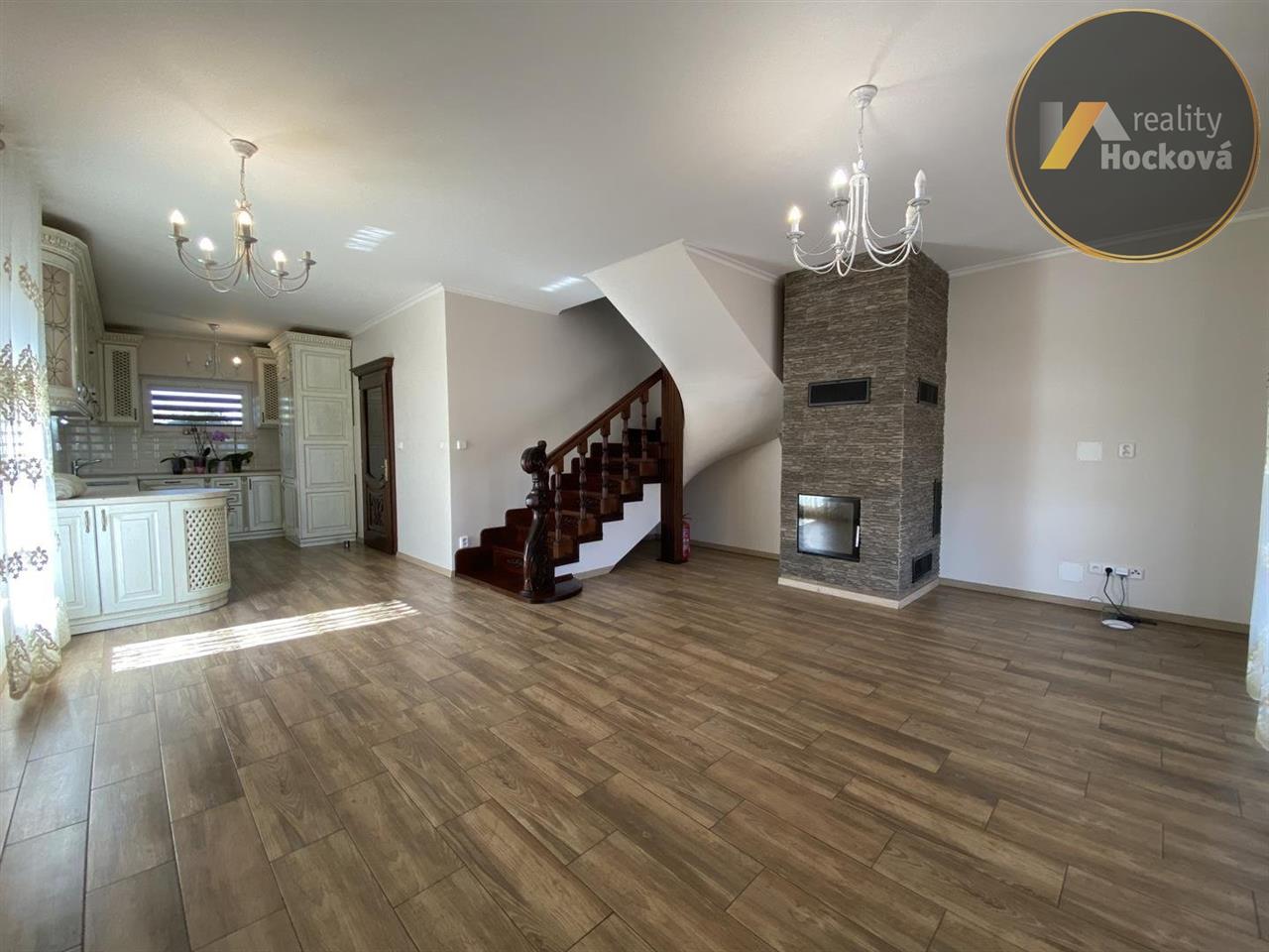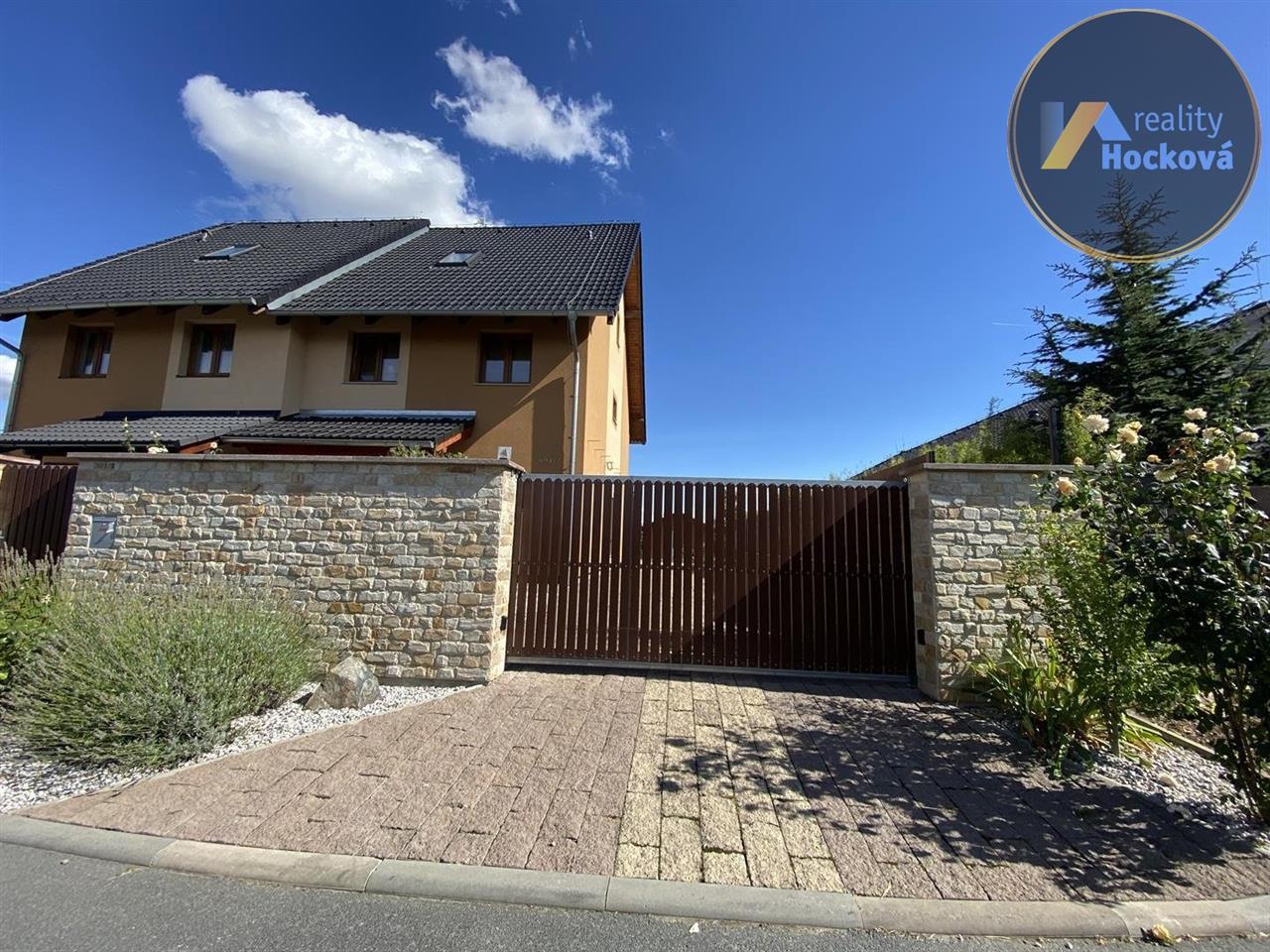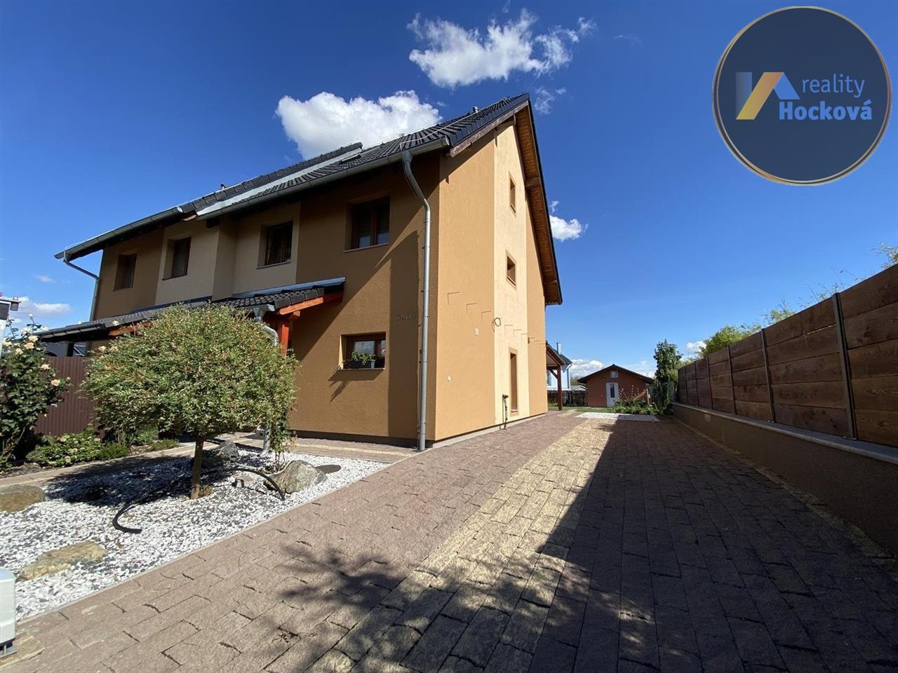 Prodej rodinného domu rozděleného na 2 bytové jednotky. Nabízíme k prodeji samostatnou a oddělenou 1/2 domu o velikosti 6+kk (160m2) na parcele 442m2 v obci Odolena Voda, ulice Za Humny. Jedná se o vyhledávanou lokalitu na okraji Prahy, 10 minut do Prahy Letňan. Dispozice domu: vstup z chodby do šatny, technické místnosti a do koupelny s WC a sprchovým koutem. Dále vstup do kuchyně s jídelním koutem a obývacím pokojem s krbem a vstupem na zastřešenou prostornou terasu se zahradou. Z obývacího pokoje je vstup po masivním schodišti do 1NP kde jsou 3 ložnice (v jedné z nich je vstup do šatny) a koupelna s vanou, umyvadlem, WC a bidetem. Z chodby je vstup do 2NP kde jsou dvě prostorné a světlé místnosti. Všechny dveře, zárubně, schodiště a kuchyňská linka je z vyřezávaného masivního dřeva (schodiště zakázková výroba). V domě je podlahové vytápění kombinace el. kotel + krb s výměníkem. Dále vedle domu je postaven menší domek, který slouží jako obytná kuchyň, včetně sprchy a WC. Kolaudace domu 2019. V obci je ŽS, MŠ, zdravotní středisko, lékárna, obchody, pošta, několik restaurací. Dopravní spojení bus Praha/Kralupy, autem 12 minut do Prahy. Vhodné nejen pro rodiny s dětmi. Pro více informací volejte na tel.