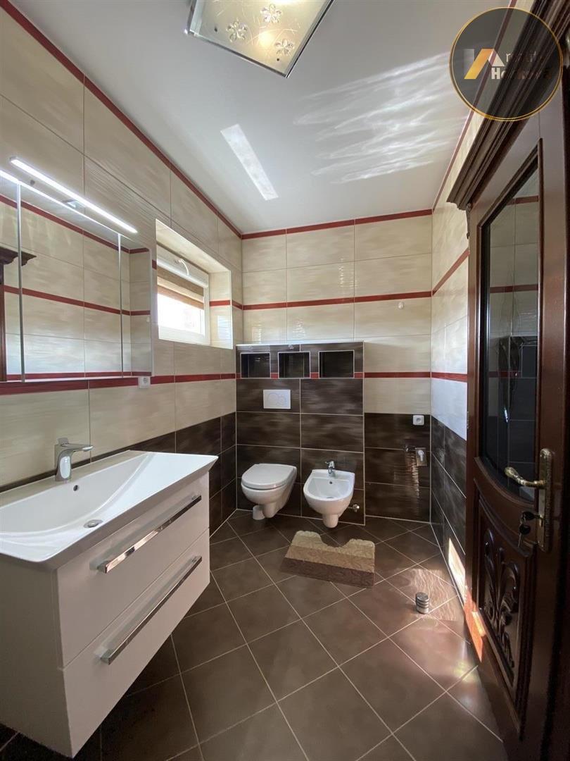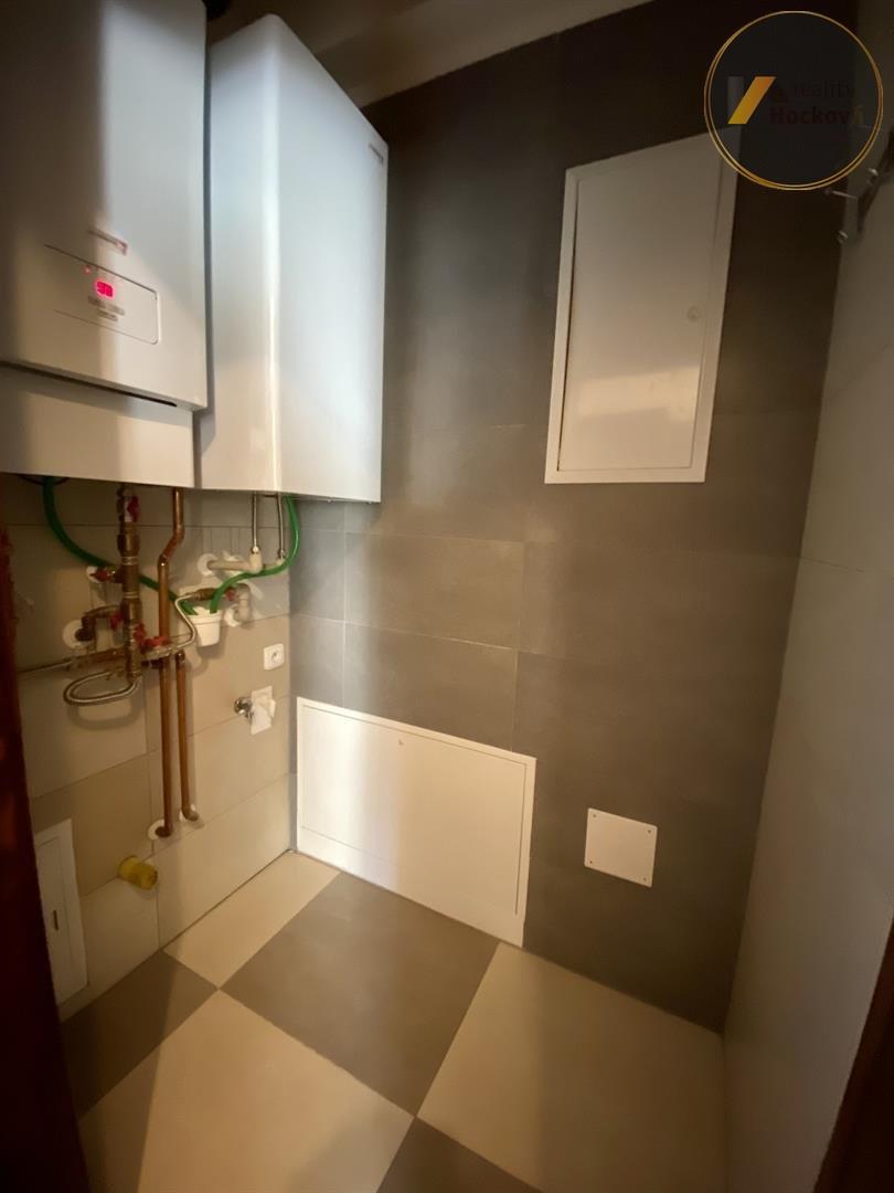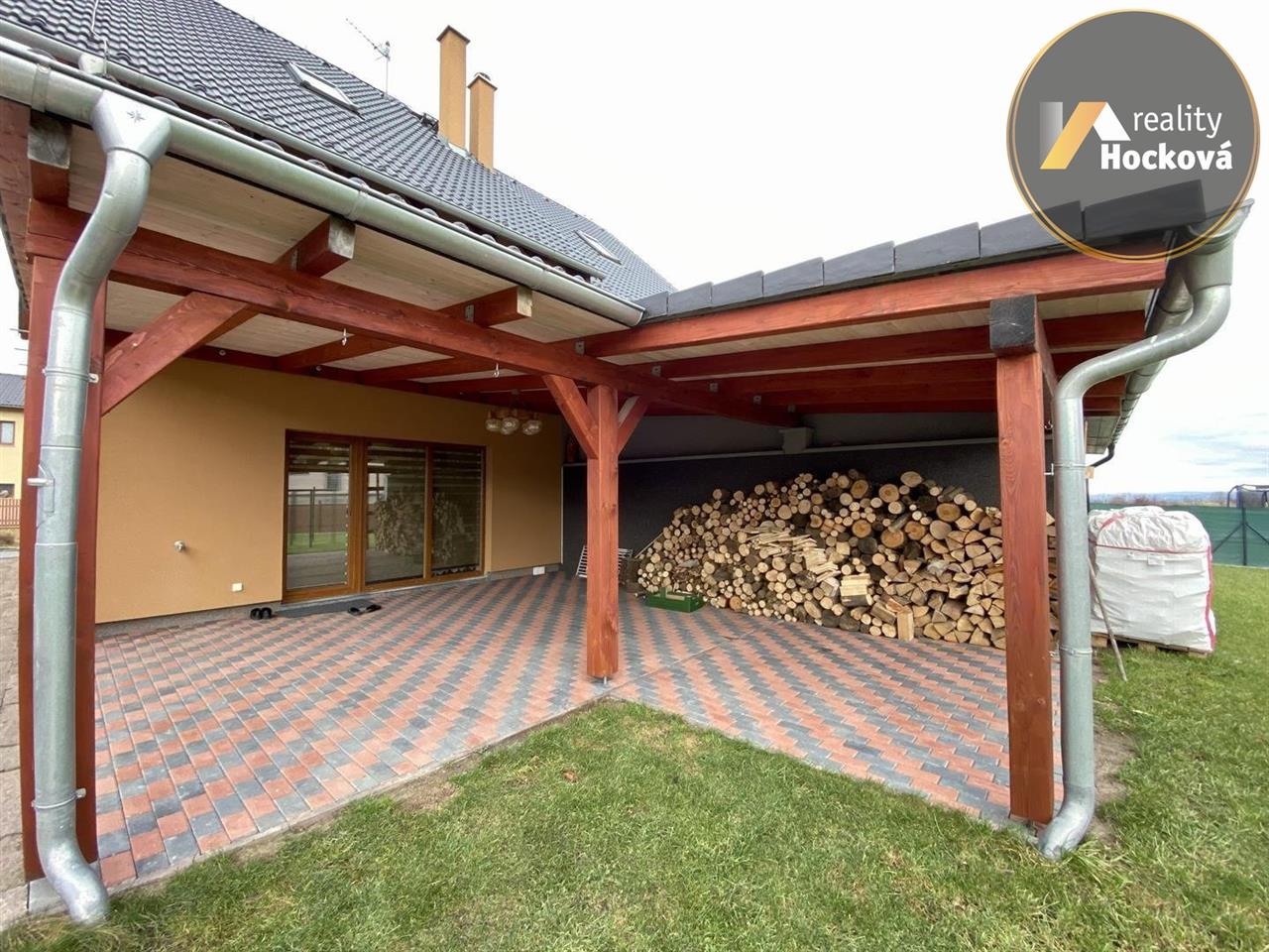 Prodej rodinného domu rozděleného na 2 bytové jednotky. Nabízíme k prodeji samostatnou a oddělenou 1/2 domu o velikosti 6+kk (160m2) na parcele 442m2 v obci Odolena Voda, ulice Za Humny. Jedná se o vyhledávanou lokalitu na okraji Prahy, 10 minut do Prahy Letňan. Dispozice domu: vstup z chodby do šatny, technické místnosti a do koupelny s WC a sprchovým koutem. Dále vstup do kuchyně s jídelním koutem a obývacím pokojem s krbem a vstupem na zastřešenou prostornou terasu se zahradou. Z obývacího pokoje je vstup po masivním schodišti do 1NP kde jsou 3 ložnice (v jedné z nich je vstup do šatny) a koupelna s vanou, umyvadlem, WC a bidetem. Z chodby je vstup do 2NP kde jsou dvě prostorné a světlé místnosti. Všechny dveře, zárubně, schodiště a kuchyňská linka je z vyřezávaného masivního dřeva (schodiště zakázková výroba). V domě je podlahové vytápění kombinace el. kotel + krb s výměníkem. Dále vedle domu je postaven menší domek, který slouží jako obytná kuchyň, včetně sprchy a WC. Kolaudace domu 2019. V obci je ŽS, MŠ, zdravotní středisko, lékárna, obchody, pošta, několik restaurací. Dopravní spojení bus Praha/Kralupy, autem 12 minut do Prahy. Vhodné nejen pro rodiny s dětmi. Pro více informací volejte na tel.