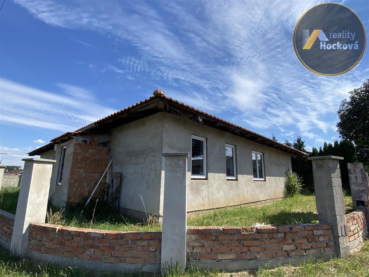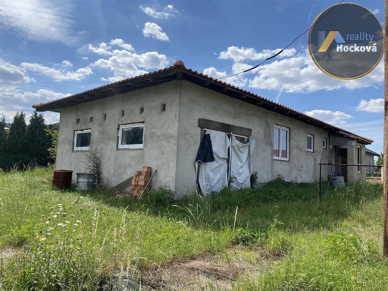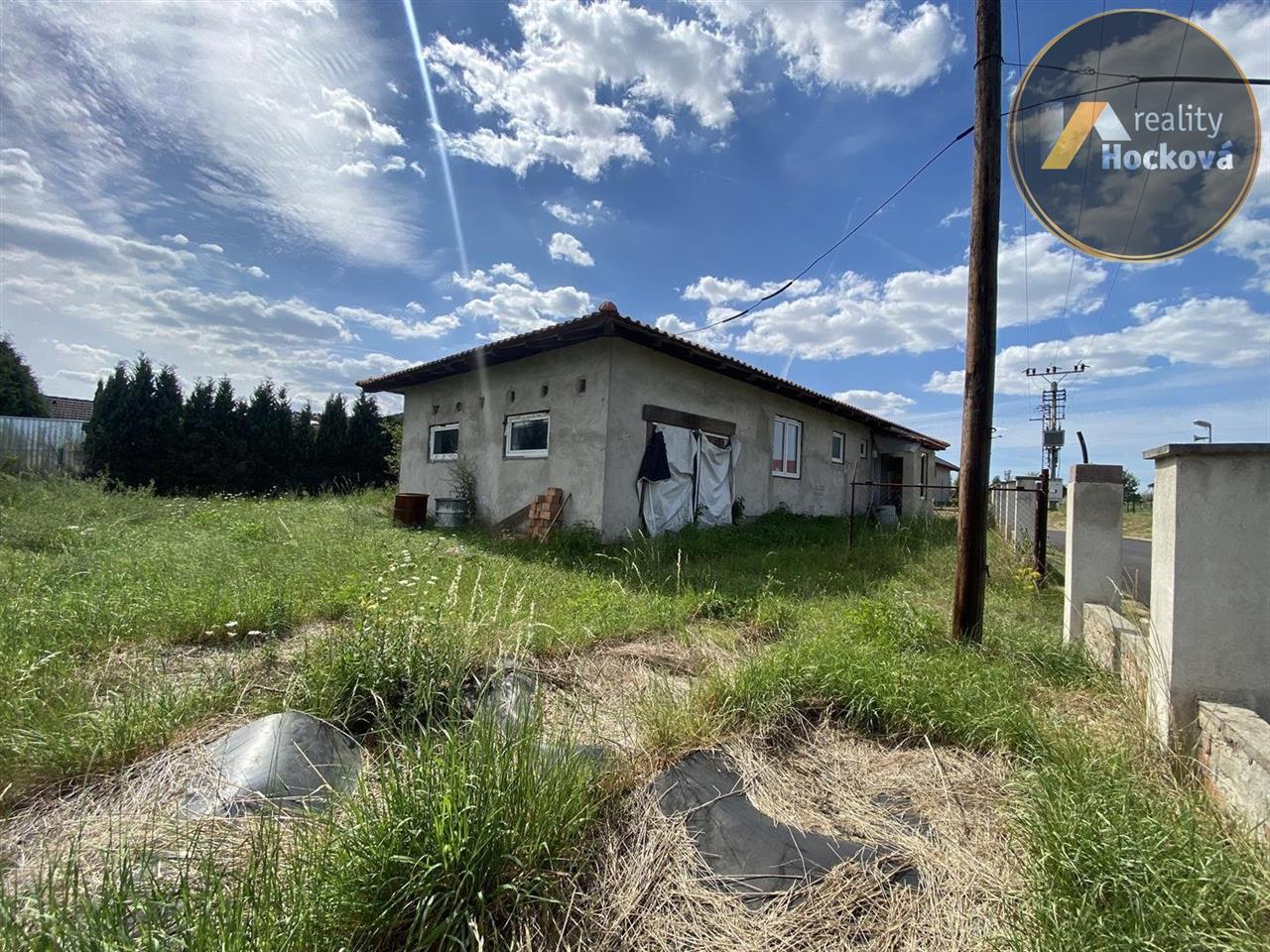 Prodej rozestavěného samostatného rodinného domu (bungalov) o dispozici 4+1 s garáží (127,85m2) v obci Hrobce. Jedná se o rozestavěnou stavbu z roku 2008. Dispozice domu: vstup ze zádveří (3.13m2) do chodby (7.41m2), dále do kuchyně s jídelnou (15.8m2), do obývacího pokoje (31.4m2), koupelny (4m2), oddělené WC (1.62m2) a dále do 3 samostatných pokojů (13.95m2, 11.44m2 a 13.17m2). Garáž o velikosti 25.92m2. Pozemek je oplocený. Elektřina, kanalizace, vodovodní přípojka a plyn na hranici pozemku. Klidná lokalita s výbornou dopravní dostupností (vlakové spojení v místě). Místo vhodné pro rodinu s dětmi. ZŠ, restaurace a potraviny vzdálené pouhé 2km ve vedlejší obci Libotenice. Pro více informací volejte na tel.