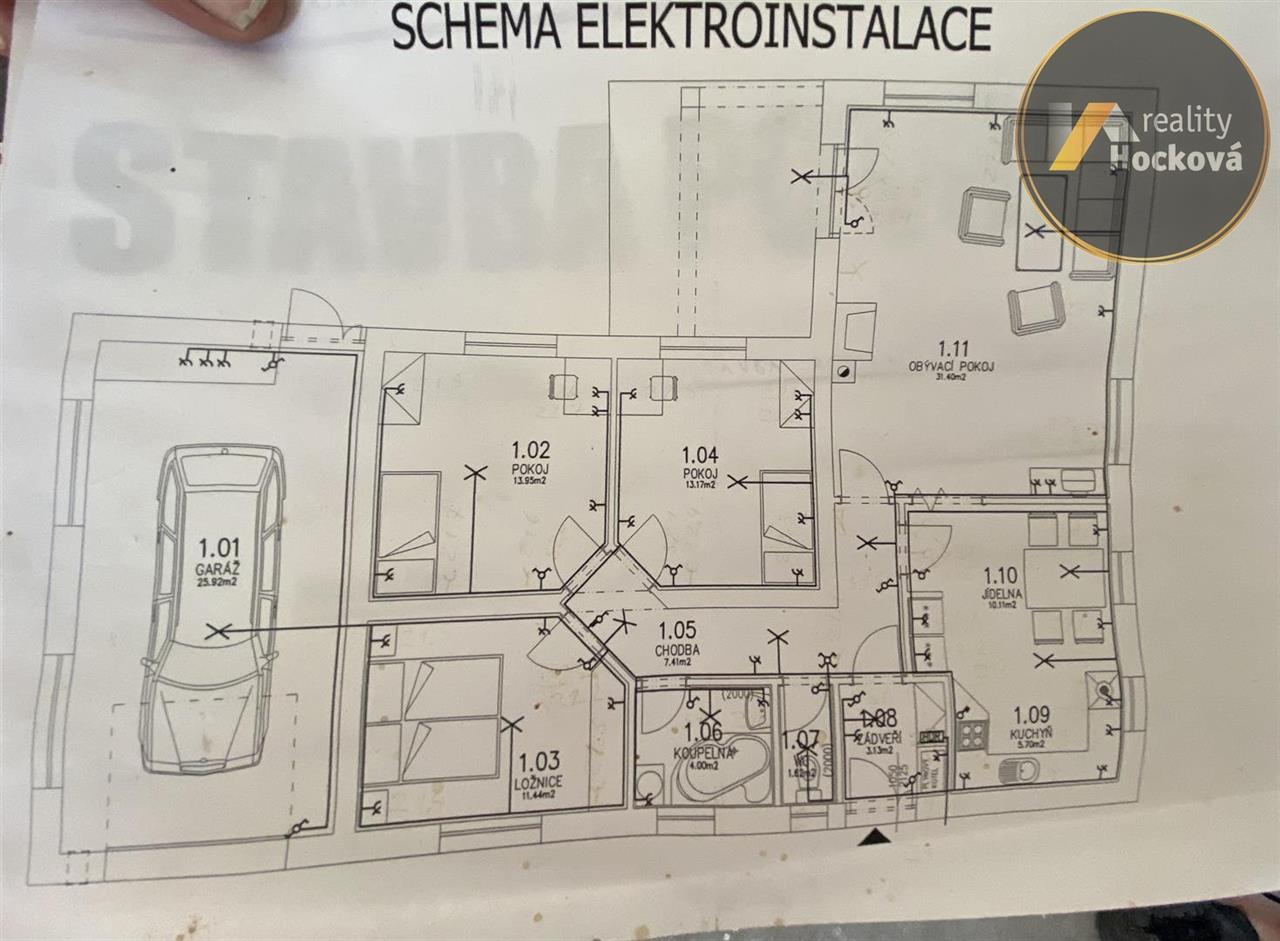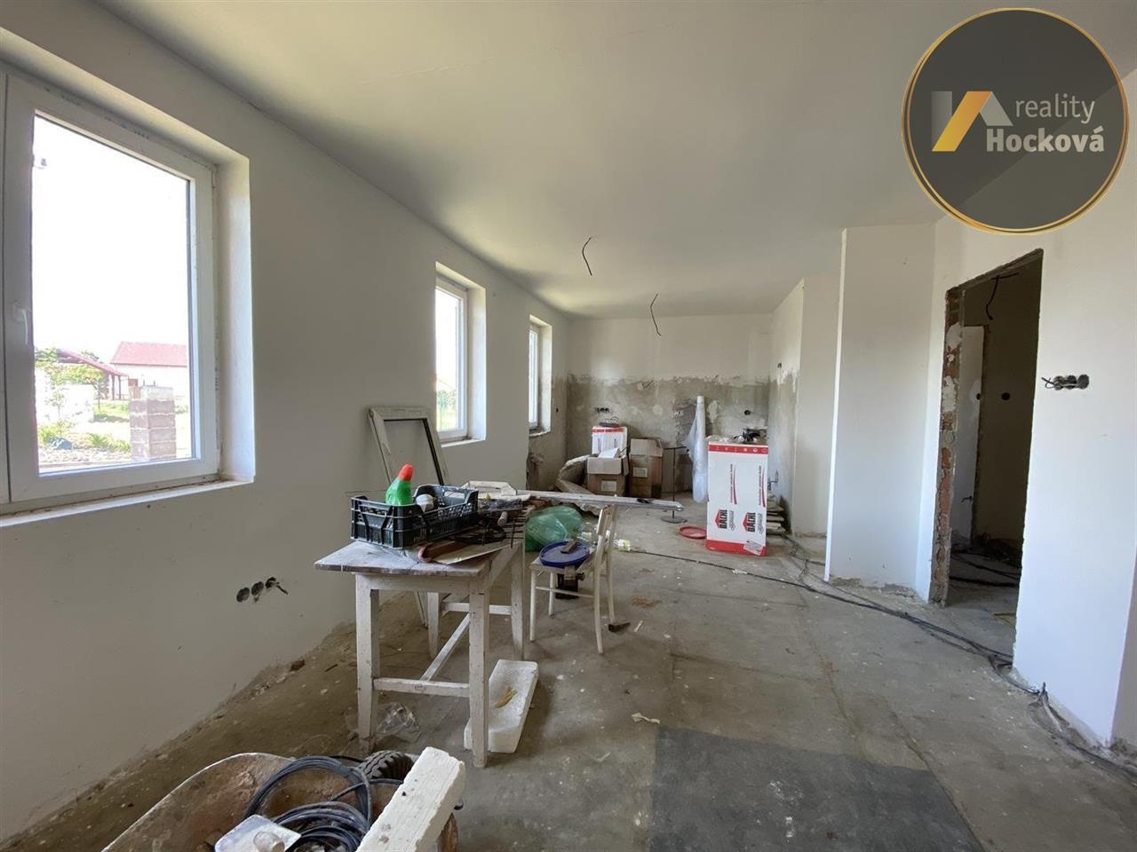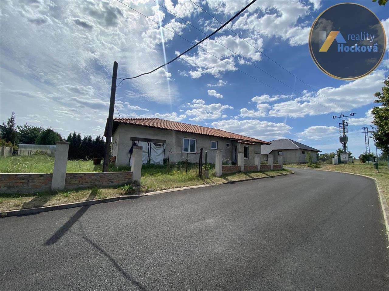 Prodej rozestavěného samostatného rodinného domu (bungalov) o dispozici 4+1 s garáží (127,85m2) v obci Hrobce. Jedná se o rozestavěnou stavbu z roku 2008. Dispozice domu: vstup ze zádveří (3.13m2) do chodby (7.41m2), dále do kuchyně s jídelnou (15.8m2), do obývacího pokoje (31.4m2), koupelny (4m2), oddělené WC (1.62m2) a dále do 3 samostatných pokojů (13.95m2, 11.44m2 a 13.17m2). Garáž o velikosti 25.92m2. Pozemek je oplocený. Elektřina, kanalizace, vodovodní přípojka a plyn na hranici pozemku. Klidná lokalita s výbornou dopravní dostupností (vlakové spojení v místě). Místo vhodné pro rodinu s dětmi. ZŠ, restaurace a potraviny vzdálené pouhé 2km ve vedlejší obci Libotenice. Pro více informací volejte na tel.