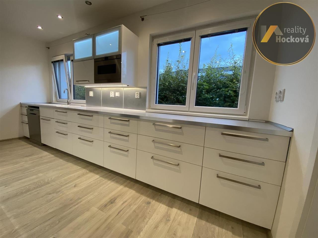 Prodej prostorného bungalovu o velikosti 6+kk s dvougaráží (215m2) kousek od řeky a cyklostezky na parcele o výměře 824m2 v obci Zlončice. Jedná se o energeticky úspornou moderní dřevostavbu z roku 2015 s velkým potenciálem. Dispozice: z prostorné předsíně je vstup do šatny, dále do dvougaráže, dále do obývacího pokoje s jídelnou a kuchyní včetně spíže, vstup do chodby v levém křídle ze které je vchod na samostatné WC, koupelny se sprchovým koutem, vanou, dvojumyvadlem a WC, dále do 3 samostatných světlých pokojů a z obývacího pokoje je vstup do prostorné ložnice ze které je vstup do koupelny se sprchovým koutem, WC, umyvadlem a dále z ložnice je vstup do pracovny. Z garáže je vstup na prostornou pochozí půdu (cca 35m2). Dům je vhodný i jako dvougenerační - lze jednoduše rozdělit na 2 samostatné jednotky (4+kk a 2+kk). Díky zahradě se vzrostlými okrasnými keři máte příjemné soukromí. V místě je ZŠ a MŠ, potraviny, dětské hřiště, zámek Chvatěruby. Dopravní dostupnost 3km Kralupy nad Vltavou nebo 18 minut Praha 9 Letňany. Pokud hledáte pohodlné bydlení v přírodě s rychlým přístupem do velkoměsta, tento bungalow je pro vás ideální volbou. Neváhejte nás kontaktovat pro více informací a domluvení prohlídky.