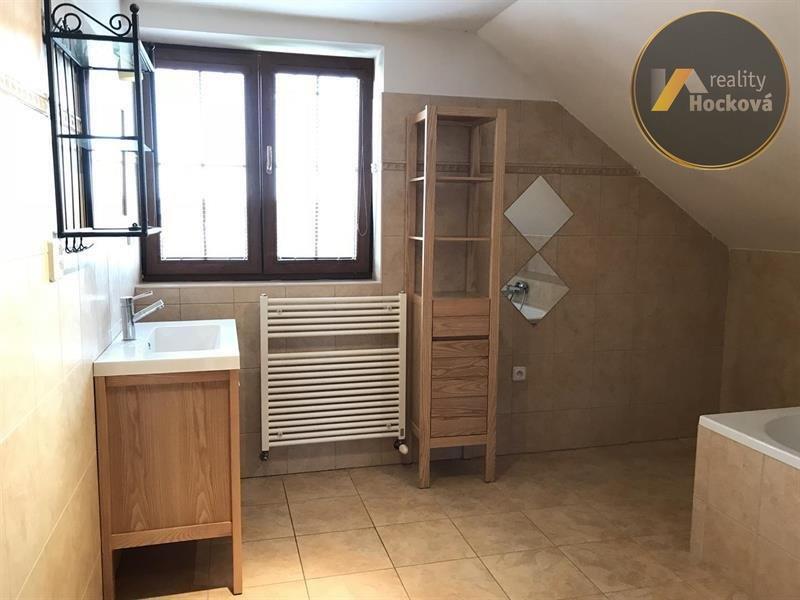 Pronájem samostatného rodinného domu o velikosti 4+kk o užitné ploše 190m2 v obci Odolena Voda - Dolínek. Dům stojí na rovinatém pozemku s okrasnou zahradou o velikosti 643m2, dále je zde zastřešená terasa, přístřešek na dřevo, garáž pro 2 vozy (možno využít jako dílna) a dále je u domu další garáž pro 1 vůz. Parkování na pozemku pro 2-3 vozy za bránou s el. pohonem. Dům je vytápěn plynovým kotlem, v přízemí podlahové vytápění a v patře radiátory. Dispozice domu: z prostorné předsíně je vstup do garáže, do koupelny s WC a sprch. koutem, pokoje, komory pod schodištěm a dále vstup do obývacího pokoje s vybavenou kuchyňskou linkou (dřez, digestoř, sklokeramická deska, trouba, lednice) a krbová kamna. Vstup na terasu z obývacího pokoje. Schodiště z chodby vede do 1NP kde je koupelna s vanou propojená dveřmi do ložnice, šatna, druhá koupelna se sprch. koutem i WC a obývacím pokojem s přípravou pro kuchyňskou linku. Vchod na balkon francouzskými okny. Měsíční náklady 5.500 Kč. V obci je MŠ, ZŠ, obchody, lékaři, fotbalové hřiště, restaurace, zastávka autobusu se spojením do Prahy směr Kobylisy a směr Kralupy nad Vltavou. Volný ihned! Majitel preferuje bez zvířat. Kauce ve výši 1 měsíčního nájmu.