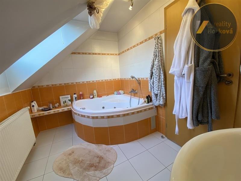 Nabízíme nadstandardně vybavený třípodlažní rodinný dům o velikosti 5+kk o užitné ploše 154m2 v obci Postřižín s pozemkem 236m2. Dispozice domu: vstup do prostorné předsíně ze které je vchod do samostatné koupelny s umyvadlem, sprchovým koutem, místem pro pračku + sušičku, bojler a topný žebřík, dále vstup na oddělené WC, komora kde je el. kotel a technické zázemí, po té je vstup do prostorného světlého obývacího pokoje s velkou kuchyňskou linkou se zabudovanými spotřebiči a vstupem z obývacího pokoje francouzskými dveřmi do zahrady. Z obývacího pokoje vede schodiště do 1NP kde je vstup do 3 samostatných pokojů, šatny, koupelny s rohovou vanou, umyvadlem, topným žebříkem a dále samostatné WC. Z předsíně vede schodiště do 2NP kde je podkrovní prostorný pokoj. Dům je vytápěn elektrickým kotlem, krbem s výměníkovou vložkou (průduchy do dětských pokojů), zabezpečovací zařízení Jablotron. Velmi nízké náklady na dům 3.200 Kč/měsíčně. V celém domě jsou plovoucí podlahy, dlažba + v jedné místnosti koberec. Zahrada je osázená vzrostlými keři a květinami včetně zahradního domku, zastřešeného altánu i s krbem. Před domem jsou k dispozici na pozemku dvě parkovací stání. V obci je MŠ, obchod, restaurace a 2km v Odolena Vodě je lékař, lékárna, obchody MŠ, ZŠ a další restaurace. Výborná dopravní dostupnost do Prahy 15 minut, Kralupy nad Vltavou 5 minut. Hypoteční úvěr Vám zajistíme. Pro další informace volejte na tel.
